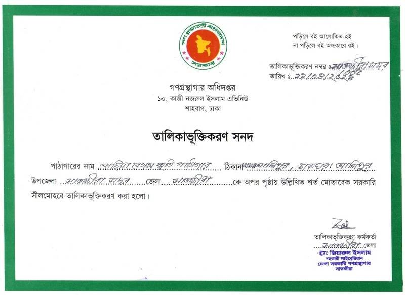 গ্রন্থাগারের নাম: আছিয়া বেগম স্মৃতি পাঠাগার