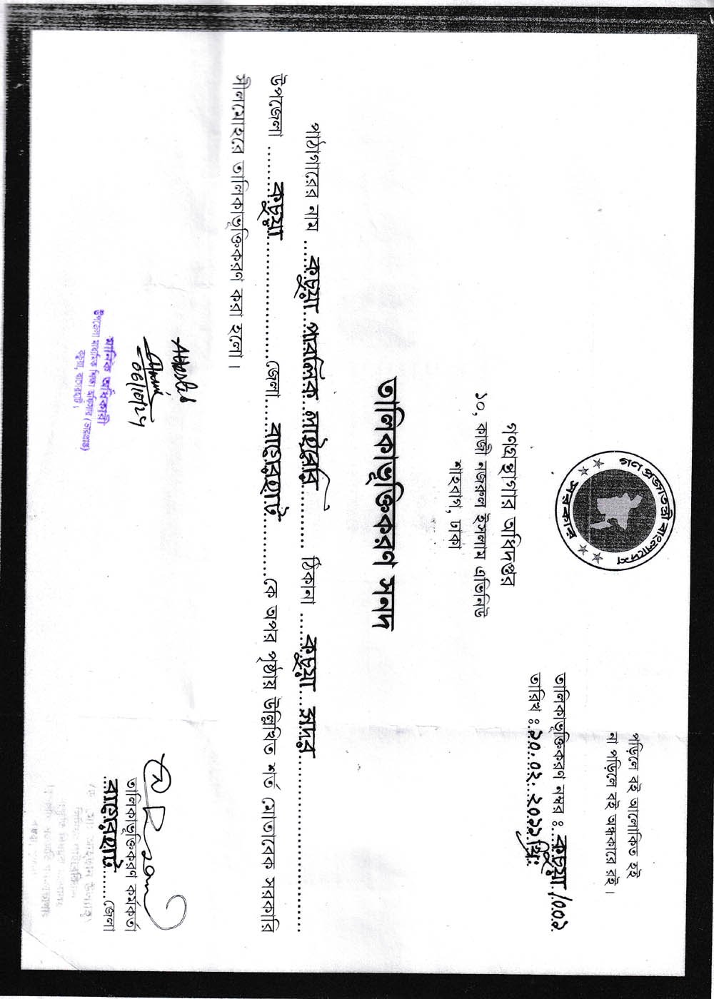 গ্রন্থাগারের নাম: কচুয়া পাবলিক লাইব্রেরি
